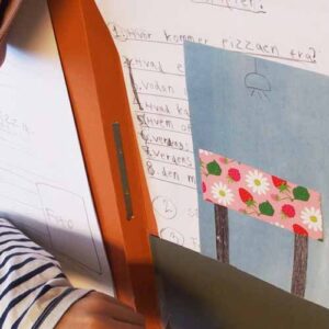 En del af bogfremstillingen foregik på biblioteket – dels for at få en faglig sparring med bibliotekaren samt adgang til bøger, som eleverne kunne finde inspiration i. Men en væsentlig grund var også, at give eleverne en oplevelse af, at biblioteket kan andet end at være et sted, hvor man låner bøger. Det er et rart og inspirerende sted at være, og dette vil måske få eleverne til at bruge biblioteket mere – også når de bliver lidt ældre, der hvor flere børn desværre ofte mister interessen for at låne og læse bøger.”