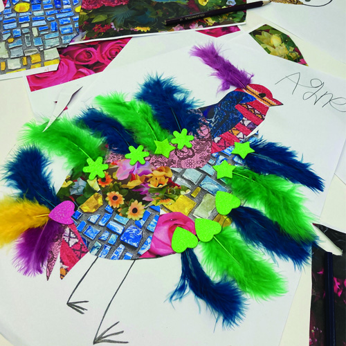Derudover er der mulighed for en mange forskellige workshops med kreative collage-aktiviteter eksempelvis workshoppen “Byg en billedbog” som også kan understøtte de nye depotbibliotek for “Ordløse billedbøger” CB Gentofte. Læs mere om ordløse bøger på Sprogsporet.